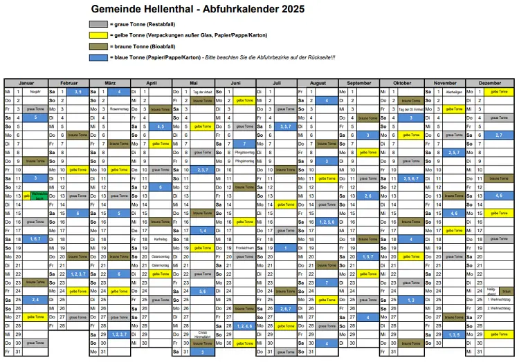 Календарь вывоза мусора (Abfallkalender) – это график, составляемый на год, по которому производится вывоз мусора (замена контейнеров). Составляют его ответственные компании каждой Федеральной земли.
