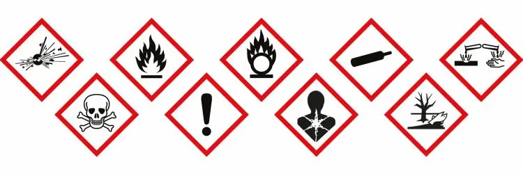 Обычно наличие опасных отходов и загрязняющих веществ в домашнем хозяйстве можно определить по различным символам опасности (красно-белые пиктограммы), а также по информации об опасности и мерах безопасности на упаковке.