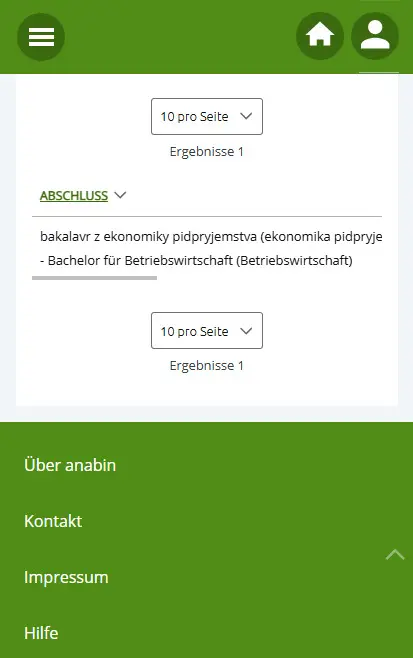 Ни записи в базе данных Anabin, ни результаты оценки диплома не заменяют собой процедуру признания диплома для регулируемых профессий.