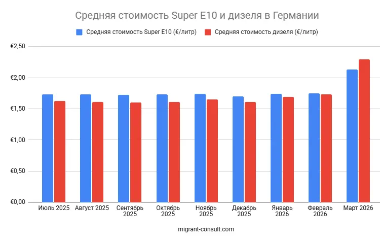 Как изменялись цены на бензин в Германии в 2025 — 2026 годах?