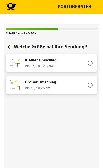 - Размер: Kleiner Umschlag (маленький конверт) или Großer Umschlag (большой конверт).