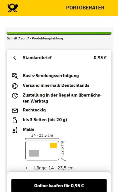 | Standardbrief | €3,30 | €3,60 | €12,50 |