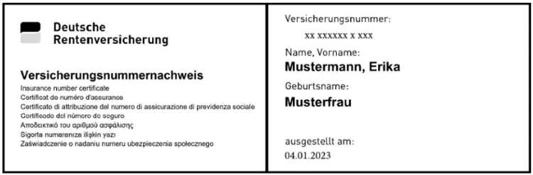 Социальная служба Германии в любом случае уведомит человека о присвоенном номере, предоставив специальный документ — Sozialversicherungsausweis. При любом типе дистанционного запроса, Карта социального страхования поступит по традиционной почте, поэтому крайне важно, чтобы почтовый адрес был указан правильно.